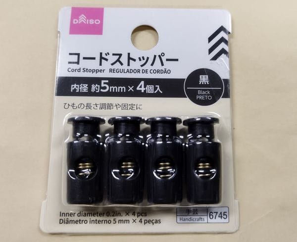 ダイソーにちょうど必要数の4つ入ったストッパーがあったので、これを使用して…。